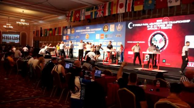 Türkiye'nin ev sahipliğinde bu yıl 40'ıncısı Antalya'da düzenlenen Dünya Bilek Güreşi Şampiyonası, devam ediyor.