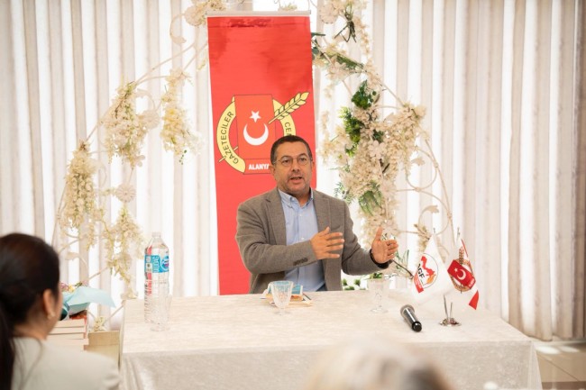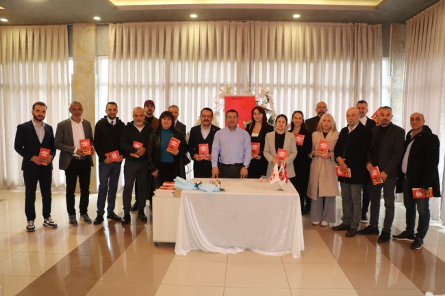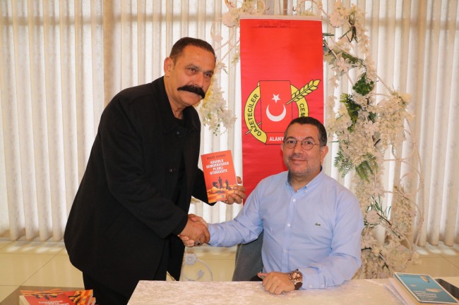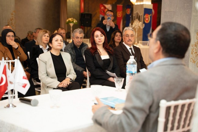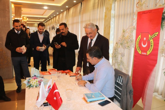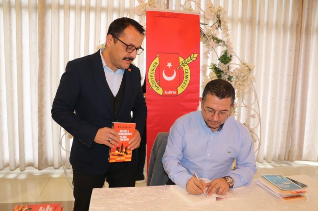 Esat Aydın, yaklaşık 1 saat süren söyleşinin sonunda "Kusurlu Demokrasiden Planlı Otokrasiye" adlı kitabını imzaladı.