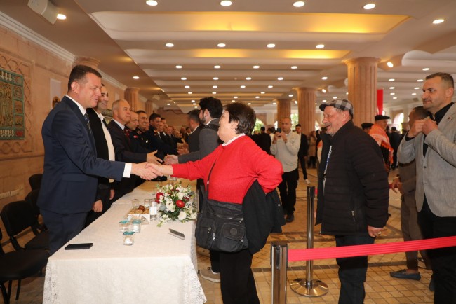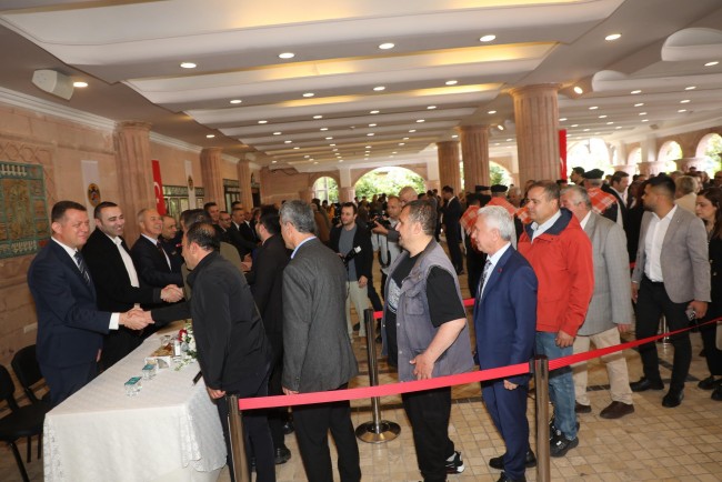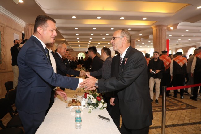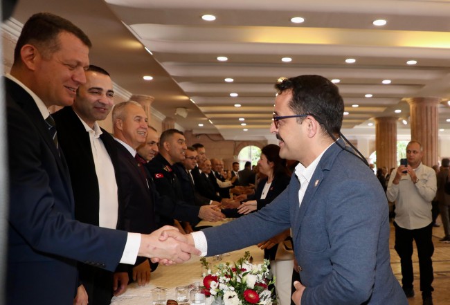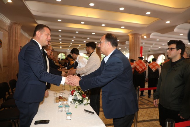 ALANYA’NIN HER YERİNDEN KATILDILAR Alanya Kaymakamı Fatih Ürkmezer ise konuşmasında,” Gelenekselleşen bayramlaşma töreni toplumun bütün kesimleriyle temas etme anlamında bizim için çok önemli. Alanyalı vatandaşlarımızda her yerden, her görüşten bu bayramlaşmaya katılıyorlar. Biz de bugün sayın vekilimiz, sayın belediye başkanımız ile beraber vatandaşlarımızla bayramlaştık. Ben başta Alanyalı hemşehrilerimiz olmak üzere bütün İslam aleminin bayramını kutluyorum” şeklinde konuştu.