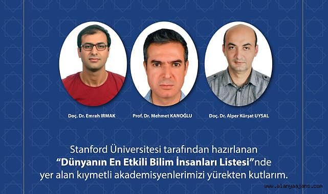Alanya Alaaddin Keykubat Üniversitesinden (ALKÜ) 3 bilim insanı, Stanford Üniversitesince hazırlanan “Dünyanın En Etkili Bilim İnsanları Listesi”nde yer aldı.