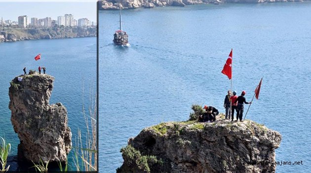 Kayalığın çok dik olması nedeniyle profesyonel yardım almadan çıkılamayacağını belirten Hikmet Şeker, "Yaklaşık 2 saat süren çalışmanın ardından yenilediğimiz bayrağımızın her yıl bakımını gerçekleştireceğiz. Hem bayrağımızı yeniledik, hem de tırmanıcılar için yeni bir tırmanış rotası belirlemiş olduk" dedi.