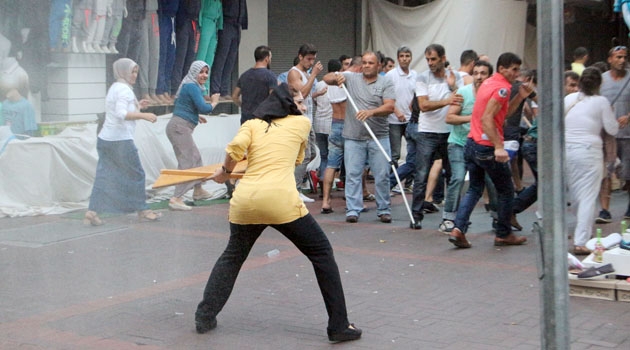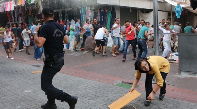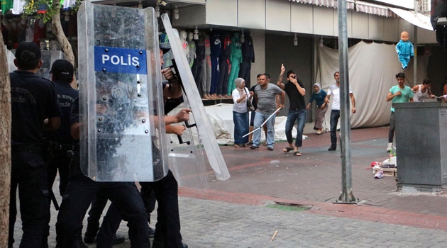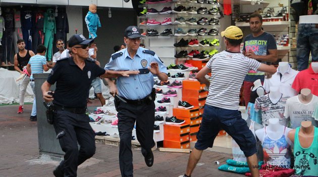 Son günlerde yaşanan terör olaylarını kınamak isteyen bir grup, Alanya HDP binasına Türk bayrağı astı. Olaya tepki gösteren HDP'lilerin polise saldırmasının ardından, grup ile HDP'liler arasında taşlı sopalı kavga çıktı.