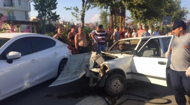 Antalya’nın Manavgat ilçesinde meydana gelen trafik kazasında sürücü, araç içinde sıkıştı.