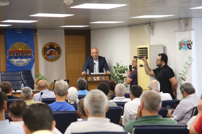 ERDEM: TARIM SEKTÖRÜNE BÜYÜK ÖNEM VERİYORUZToplantının açılış konuşmasını gerçekleştiren ALTSO Başkanı Eray Erdem, Alanya ekonomisi için her sektöre büyük önem verdiklerini belirterek, tarım sektörünün de Alanya’da çok önemli olduğunu söyledi. Başkan Erdem, tarım sektörü üzerine yaptıkları çalışmaları da katılımcılarla paylaşarak, “Alanya’mız için elimizden gelen gayretle çalışıyoruz. Tarım sektörü bizim için çok önemli. Bu anlamda büyük uğraşlar sonucu keçiboynuzunun coğrafi işaretini Alanya’mıza kazandırdık. Hemen ardından da Saburlar Mahallemizde 5 bin fidan dağıttık. Bugün de üreticilerimiz ile birlikte panelde bir araya geliyoruz. 8 Eylül Pazartesi günü de Obaalacami Mahallemizde hasat şenliği yapacağız. Tüm üreticilerimizi davet ediyoruz” dedi.