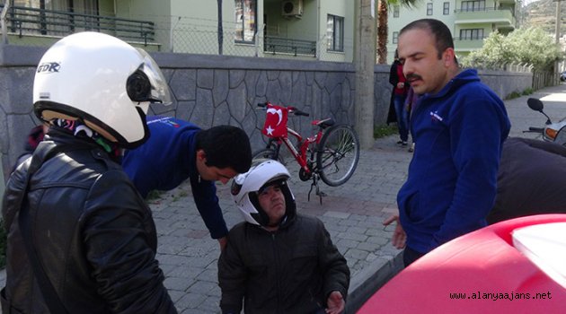 Alanya'da motosiklet sürücüsü önce kontrolsüz dönüş yapan ambulansa çarptı, ardından aynı ambulansla hastaneye kaldırıldı.