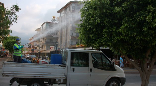 Alanya Belediyesi ağaç, bitki ve mevsimlik çiçeklerde ilaçlama çalışmalarını sürdürüyor.