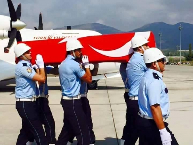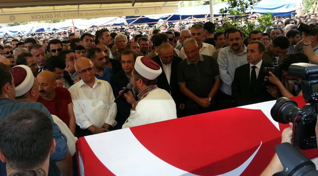 Törende Dışişleri Bakanı Mevlüt Çavuşoğlu öptüğü bayrağı sehit ailesine teslim etti. Antalya Emniyet Müdürü Cemil Tonbul ise aileye şehitlik beraatini teslim etti.