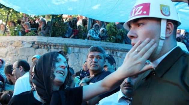 Şehit olan oğluyla telefonda konuşurken duyduğu silah seslerinin hala kulaklarında çınladığını anlatan Salim Sarpkaya, şunları söyledi:"O anki telefonda konuşmaların sesleri hala kulağımda. Saat 11.30 gibi beni arayarak çarşıya çıktığını söyledi. Postanede işinin olduğunu söyledi ve postane de birliğinin bitişiğindeymiş. Niye tek başına çıktığını sordum ’Yanımda korumalar, arkadaşlar var. Bankamatikten para alıp döneceğim. Bir isteğin var mı baba’ dedi. Ben de ona sağlığının yerinde olmasını isteyerek, ’Sen sadece benim evladım değilsin, senin yanındaki de bir insan evladı’ dedim. O sırada biri bir şey sordu ve ’Bir dakika’ dedi. ’Ben astsubayım’ dedi ve ardından tek el silah sesi gibi patlama oldu. Ondan sonra oğlumla bağlantı kesildi. 3-5 dakika bekledim aradım ama telefona bakan yoktu. Şemdinli’deki haberlere bakınca bankamatiğin önünde astsubaya silahlı saldırı olduğunu okudum ve o an içime ateş düştü."Ekmek peşinde koşanların çocuklarının öldüğünü, zenginlerin çocuklarının hiç ölmediğini vurgulayan Salim Sarpkaya şöyle konuştu:"Senin benim gibi ekmek peşinde olanların çocuklar gidiyor zenginlerin ki gitmiyor. Parası var 15-20 milyarı yatırıp geçiyorsun. Benim çocuğum dağın başında çatışmada vurulsa amenna, ama tugayın karargahının önünde vuruldu. Binbaşımız çocuğunun gözünün önünde vuruldu yazık değil mi? Ekmek davası bu, başka memleket için çatışmıyorlar ki. Bunu artık büyüklerimizin düşünmesi gerek.""KARDEŞİMİN YÜZÜNÜ OKŞAR GİBİ HİSSETTİM"Şehit olan kardeşinin Türk bayrağına sarılı tabutunun başında nöbet tutan askerin gözyaşlarını silerek yüzünü okşayan Ziya Sarpkaya’nın ablası Deniz Bizden yaşadığı o anları gözyaşlarıyla anlattı. O an kardeşinin yüzünü okşar gibi hissettiğini anlatan Deniz Bizden, "Yüzünü sildikçe yumuşak yüzü baloncuk baloncuk terliyordu. Keşke tekrardan çıkıp gelse silsem onun yüzünü. Kardeşimi ellemiş gibi oldum çok etkilendim. Bulsun gelsin beni" diye konuştu."HANGİ MİLLETVEKİLİNİN OĞLU ŞEHİT OLDU"Gözü yaşlı abla Bizden ateşin düştüğü yeri yaktığını belirterek, "3 bin 500 TL için Doğu’da çalışıyorlar ve vekillerimiz 30-40 bin TL maaş alıyorlar. Çözüm süreci. Seçimden bu yana kaç tane şehidimiz oldu. Kaç tane evlatlar babasız kaldı. Onların günahı ne, bizim günahımız ne. Hangi milletvekilinin oğlu şehit oldu. Çıksınlar benim oğlum şehit oldu desinler. Neden demiyorlar? Çünkü demeye yüzleri yok" dedi.Salim Sarpkaya ve yakınları da Ziya Sarpkaya’nın Sofuali kabristanlığında bulunan mezarına giderek dua etti. Giresun'da anne ve kızını boğazını keserek öldürdü