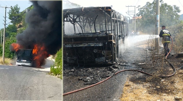 Alanya'da içerisinde yolcu bulunan halk otobüsü biranda alev topuna döndü.