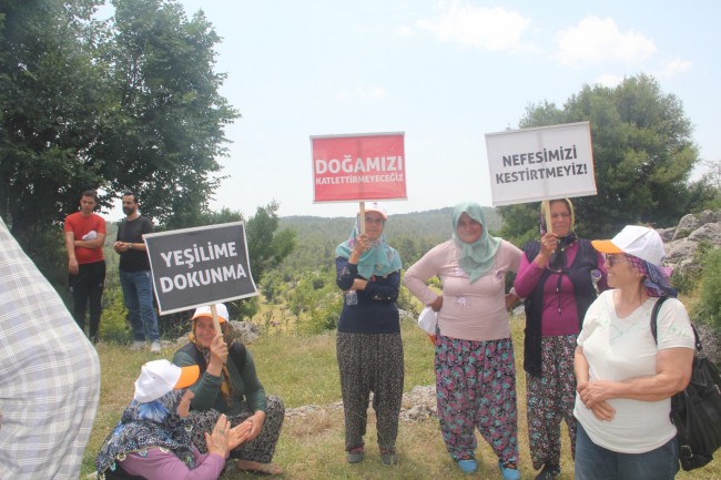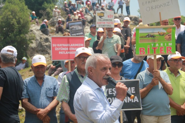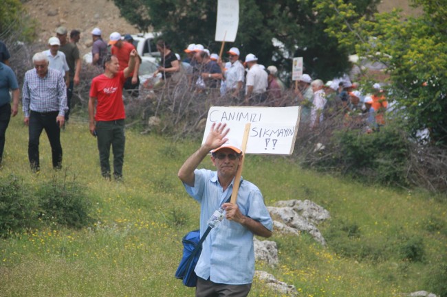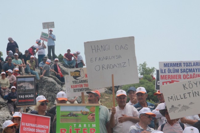 DÖVİZLİ TEPKİHalk ise açtığı pankart ve dövizlerde ‘Köylü milletin efendisidir’, ‘Endemik bitkilerimiz katlettirmeyiz, ‘Hangi dağ efkarlıysa oradayız’, ‘Yeşilime dokunma’, Tarım biter’, ‘Yaban hayatı zarar görür’, ‘Mermer tozları ile ölüm saçmayın’, Canımızı sıkmayın!’, ‘Su kaynakları üstünde dinamit patlamasın’, ‘Doğamızı katlettirmeyeceğiz’ yazarak farkındalık oluşturmaya çalıştı.