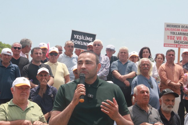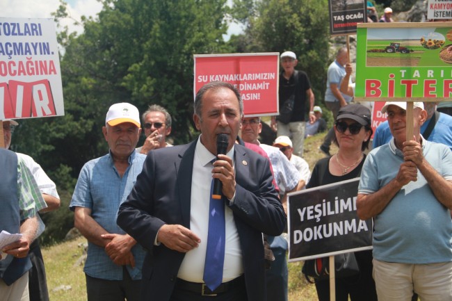 “MERMER OCAĞINA HAYIR DİYORUZ”Eyleme katılım sağlayarak mahalleliye destek veren CHP Antalya Milletvekili Aykut Kaya ise “Böyle bir olaydan dolayı bir araya gelmiş olmaktan içim acıyor. “Atatürk şüphesiz Antalya dünyanın en güzel yeri” diyerek bize büyük bir sorumluk yüklemiş. Tarihe doğaya suya sahip çıkın demiş. Bu bilinçle buradaki madencilik faaliyetine karşı buradayız. Biz madenciliğe karşı değiliz ama doğru yerde yapılırsa karşı değiliz. Burada ilçemizin geleceği söz konusu. Masa başı kararlarla yapılacak faaliyete karşı durmaya devam edeceğiz. Buradan haykırıyoruz 'Mermer ocağına hayır diyoruz' Gündoğmuşlu hemşerilerimiz yanında olmaya devam edeceğiz” dedi.