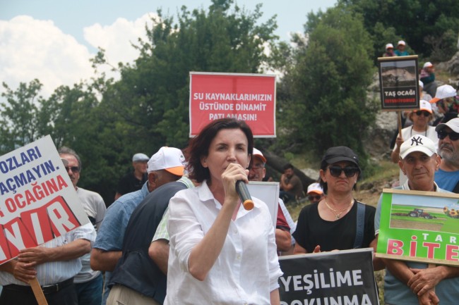 ORTAK DİRENİŞGündoğmuş Karadere, Senir ve Kozağacı Köylerini kapsayan alanda yapılmak istenen taş ocağına karşı köylülerin ve çevrecilerin katıldığı topluluk bölgede açıklama yaptı. Harmancık mevkiinde yapılan eyleme CHP Antalya İl Başkanı Nail Kamacı, CHP milletvekilleri Aliye Coşar, Mustafa Erdem, Aykut Kaya, Gündoğmuş Belediye Başkanı AK Partili Ali Gülen, muhtar ile çevreci aktivistler ve halk taş ocağına karşı çıktıklarını bildirdi.Bölge halkı eylemlerle birlikte hukuki mücadeleyi de yürüteceklerinin altını çizdi.
