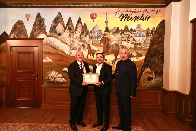 KOLAYLI'DAN ARI'YA TEŞEKKÜRTGK Genel Başkanı Kolaylı, Başkan Arı’ya gösterdiği misafirperverlik için teşekkür ederek “Nevşehir gibi tarihi ve kültürel değerleriyle ön plana çıkan bir şehirde gazeteciliğin daha fazla desteklenmesi, hem yerel kalkınma hem de toplumsal bilgilendirme açısından son derece kıymetli” dedi."GAZETECİLERİMİZİN ÜSTLENDİĞİ ROL SON DERECE DEĞERLİ"Belediye Başkanı Rasim Arı ise ziyaretten duyduğu memnuniyeti dile getirerek, “Basın, demokrasinin temel taşlarından biridir. Halkımızın doğru ve tarafsız bilgiye ulaşmasında gazetecilerimizin üstlendiği rol son derece değerlidir. Nevşehir Belediyesi olarak bizler, basın camiasının her zaman yanında olduk ve olmaya devam edeceğiz. Böyle bir organizasyonun şehrimizde yapılıyor olması da bizim için gurur verici. Katılımcıları şehrimizde ağırlamaktan ve burada görmekten duyduğum memnuniyeti ifade ediyor, saygılarımı sunuyorum” ifadelerini kullandı. Ziyaretin sonunda günün anısına Nevşehir Belediye Başkanı Rasim Arı, Türkiye Gazeteciler Konfederasyonu Genel Başkanı Nuri Kolaylı’ya teşekkürlerini ileterek Kayaşehir resmi bulunan plaket takdiminde bulundu.