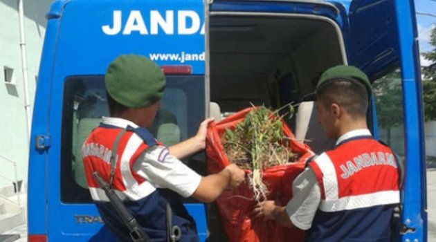 Alanya'da jandarma tarafından düzenlenen operasyonda 27 kilogram esrar ve 100 kök dişi hint keneri ele geçirildi.